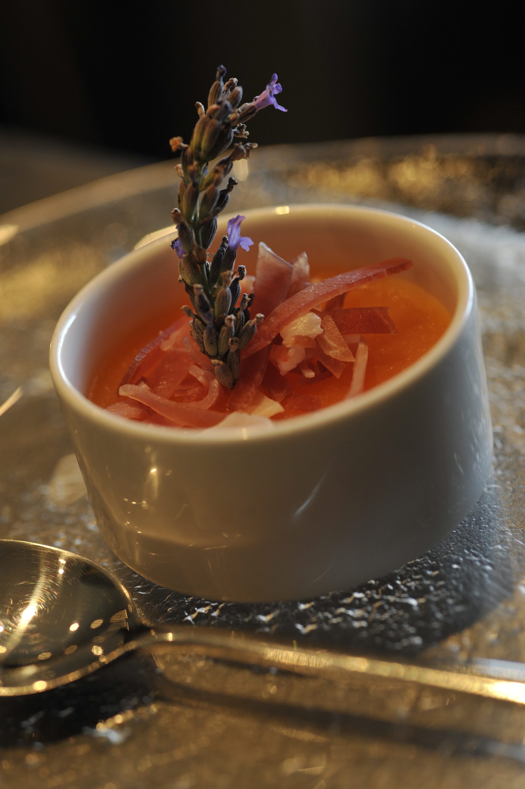 Le chef Pascal Poulain y exprime une vision sincère de la gastronomie française, entouré de producteurs locaux soigneusement choisis, il compose sa cuisine à partir d’ingrédients d’exception : Le Safran du Barroux, l’Huile d’olive du Comtat, la Figue longue noire de Caromb, les fromages de Lou Canesteou et bien d’autres. Chaque plat raconte cette relation de confiance, où l’inventivité du chef s’exprime sans jamais trahir l’essence du terroir.